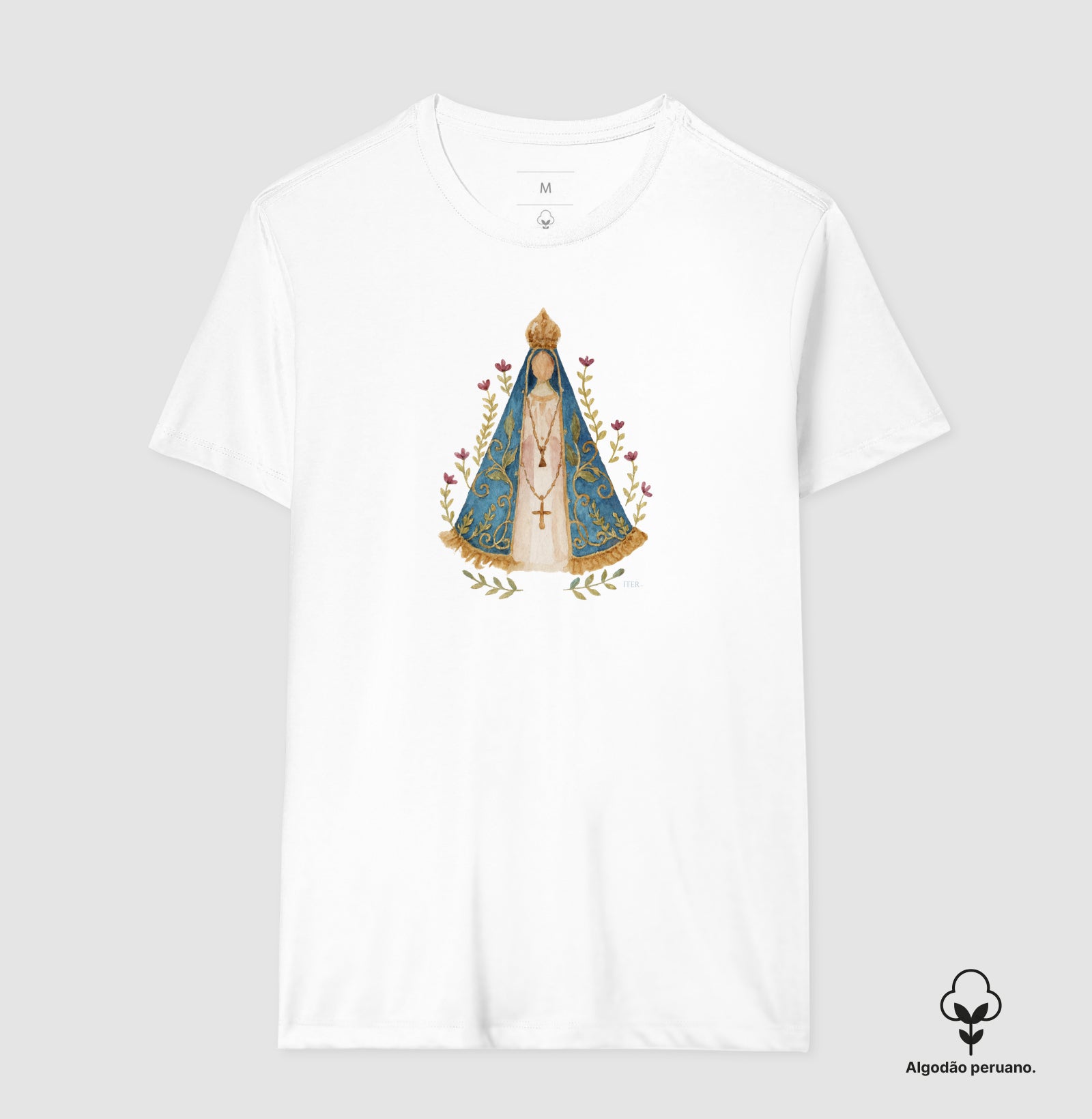 Inspirada na história e na tradição que marcam a devoção a Nossa Senhora Aparecida, esta estampa une a delicadeza da aquarela à força simbólica da Mãe do Brasil. Cada traço suave reflete o encontro milagroso da pequena imagem nas águas do Paraíba e o amor que desde então une um povo inteiro à sua Padroeira. Uma peça que traduz fé, arte e identidade — para quem deseja carregar consigo a ternura e a proteção de Nossa Senhora Aparecida. 💙